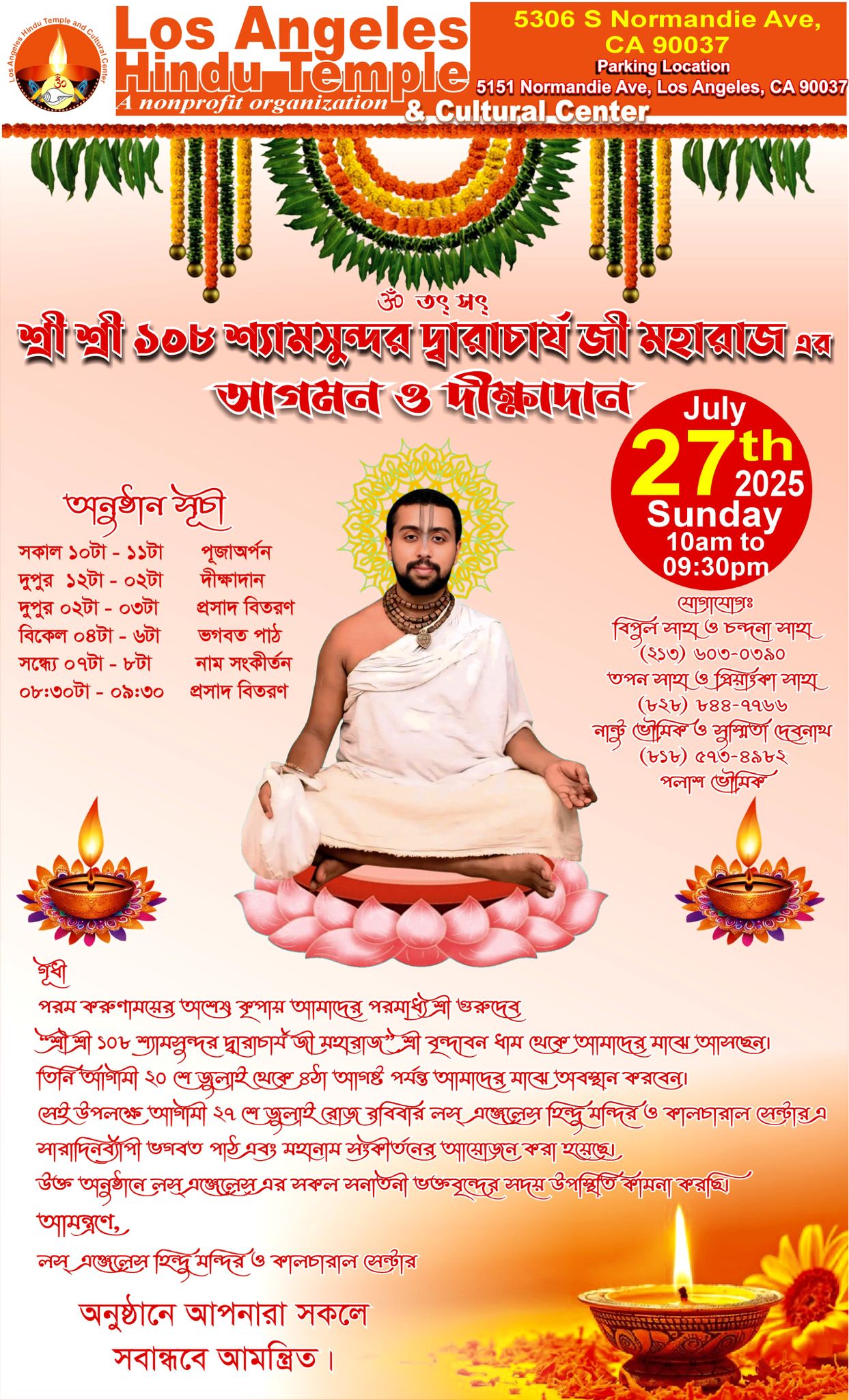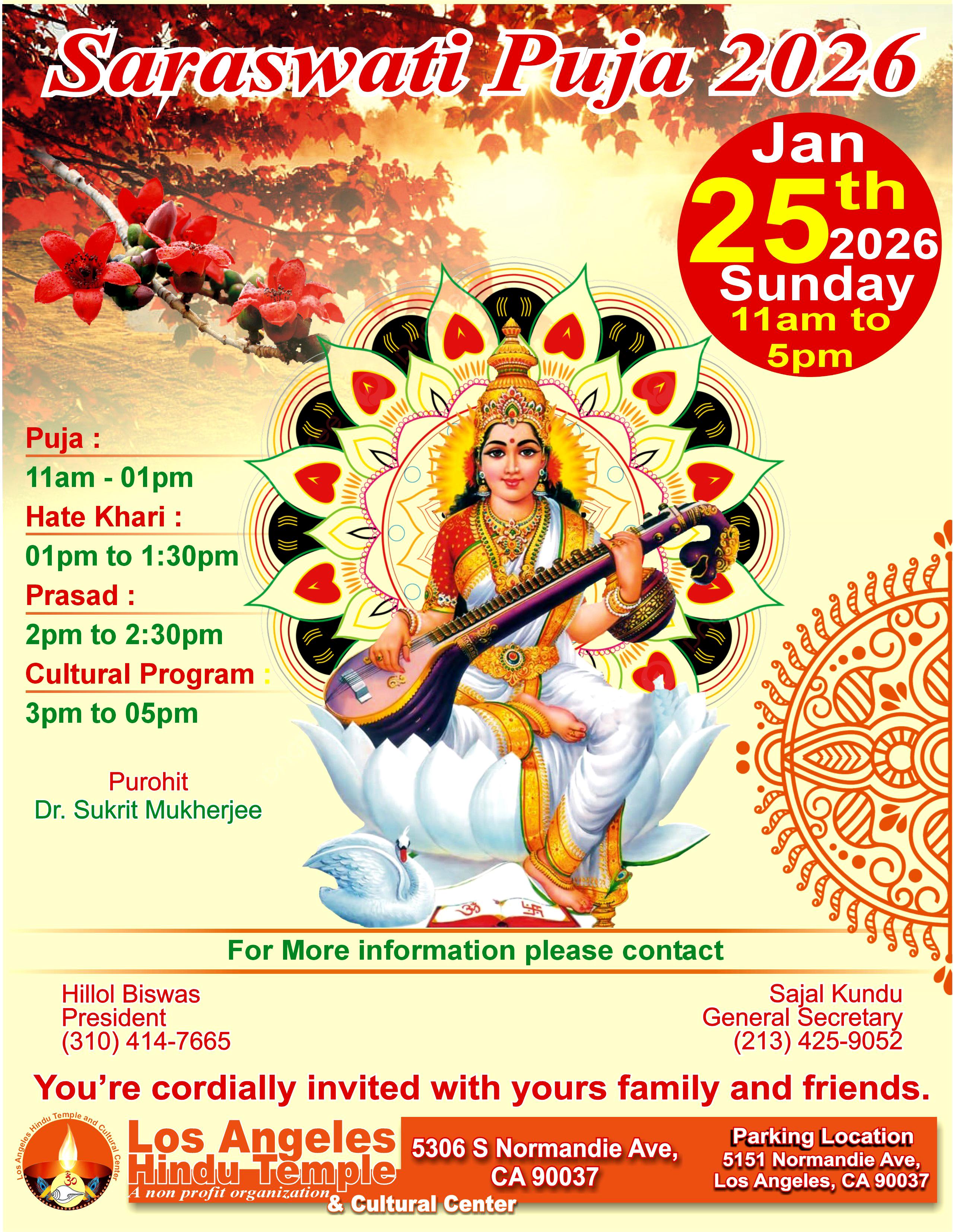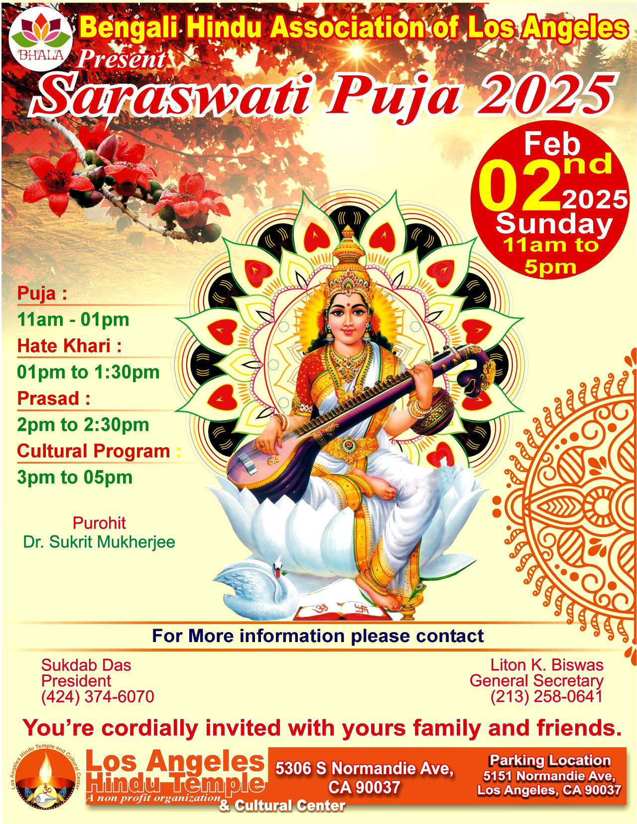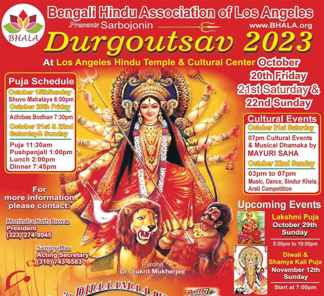 শুভেচ্ছান্তে:- বেঙ্গলী হিন্দু এসোসিয়েশন অফ লস এঞ্জেলেস