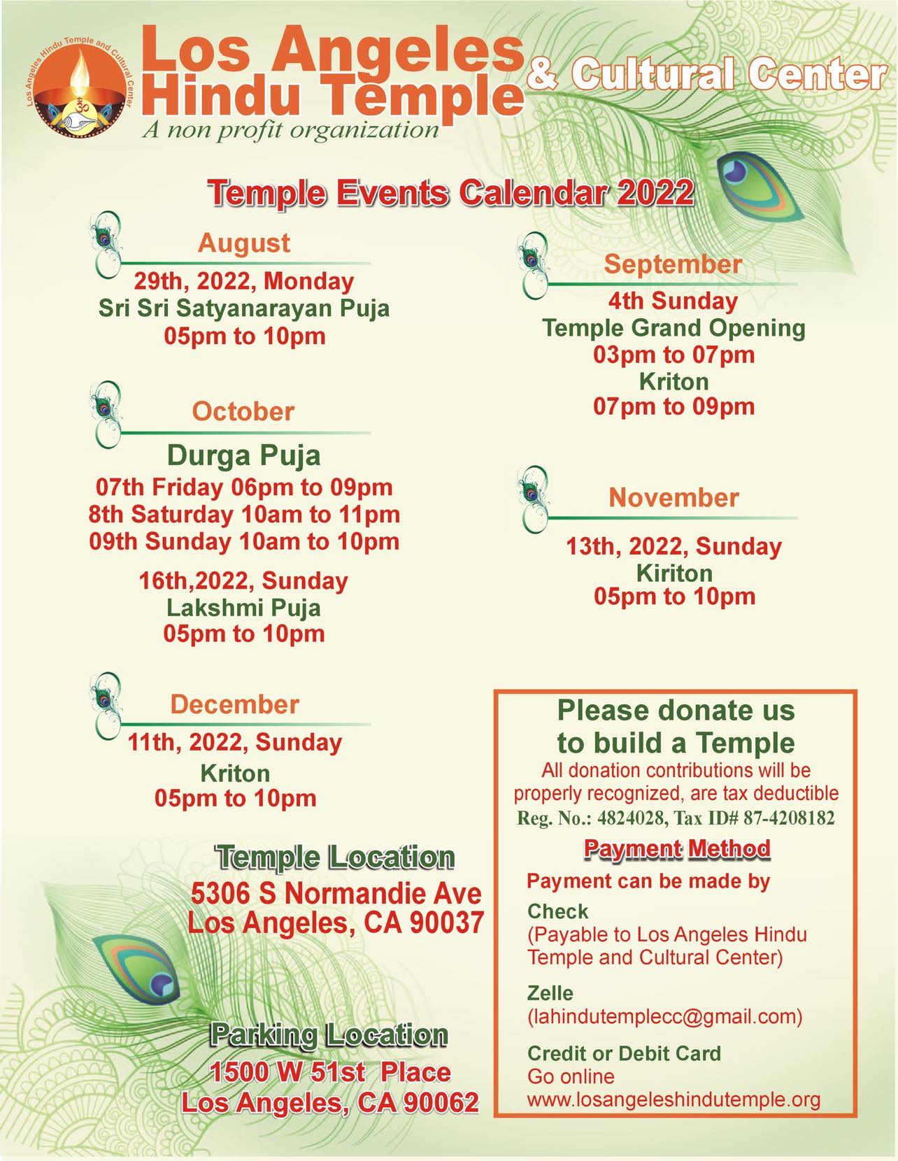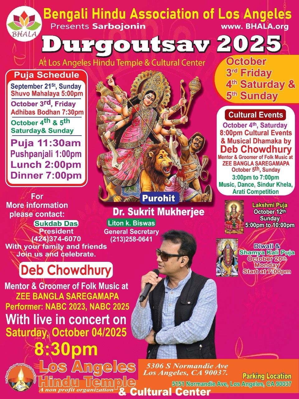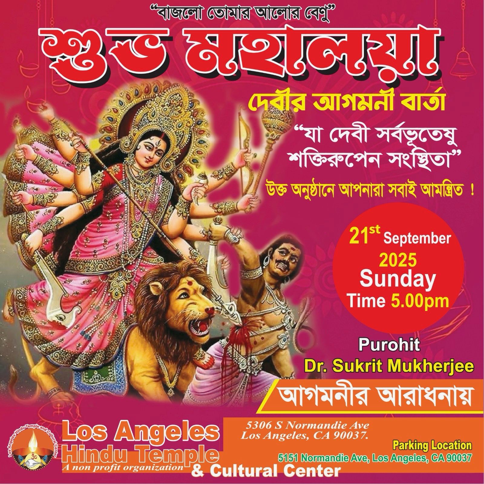শুভেচ্ছান্তে:- বেঙ্গলী হিন্দু এসোসিয়েশন অফ লস এঞ্জেলেস